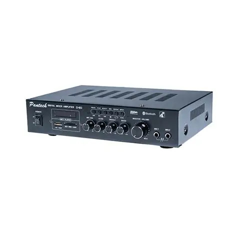 آمپلی فایر مرکزی پنتک مدل PANTECH- D60 نوعی آمپلیفایر رومیزی اهمی ولتی است. آمپلی فایر ۴ کاناله پنتک با دارا بودن توان ۶۰ وات و اکولایزر برای تنظیم میزان زیر و بمی صدا در سیستم صوتی برای تقویت صدا به کار برده میشود. گاهی پیش میآید که فاصله میکروفون از باند یا بلندگو دور است. در اینصورت، در طی مسیر کابل، صدا تضعیف میشود. برای جلوگیری از پخش صدای بیکیفیت، در آمپلیفایر از ترانس مچینگ استفاده میشود. ترانس مچینگ خروجی اهمی را به ولتاژ تبدیل میکند. در کنار باند یا بلندگو نیز باید از ترانس مچینگی که ولتاژ را به اهم تبدیل میکند استاده کرد. در صورت استفاده از ترانس مچینگها شاهد صدای خروجی باکیفیت خواهیم بود.